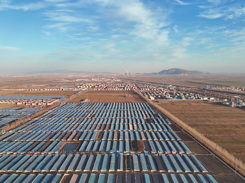 近年來,江蘇省連云港市大力發(fā)展高效設(shè)施農(nóng)業(yè),通過“黨建+市場(chǎng)+農(nóng)戶”的模式,助力群眾增收致富。圖為海州區(qū)的江蘇農(nóng)墾崗埠農(nóng)場(chǎng),近千座溫室大棚整齊坐落在田野間。