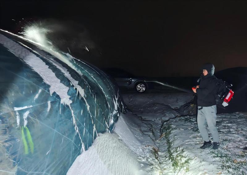 淮海農場則構建起“生產防護+民生保障”的全方位防御體系,第一時間傳達學習省農業(yè)農村廳緊急通知精神,牢固樹立“人民至上、生命至上”理念。在生產端,蘇墾農發(fā)淮海分公司重點強化麥苗分類管護,對晚播弱苗和旺長苗采取鎮(zhèn)壓保墑、合理施肥等措施。農場則在羊肚菌基地加固大棚并做好積雪清理準備,畜禽養(yǎng)殖區(qū)全面排查水電線路、配備備用發(fā)電機,通過優(yōu)化飼料營養(yǎng)保障畜禽安全越冬。在民生端,同步推進基礎設施防凍,對綠化樹木噴施防凍液、對裸露供水管網進行保溫包裹,特別關注孤寡老人、困難職工等群體,安排專人上門檢查取暖設備、儲備生活用水。目前,農場已落實24小時值班制度,成立應急小隊并儲備充足物資,確保一旦發(fā)生險情能夠快速處置。