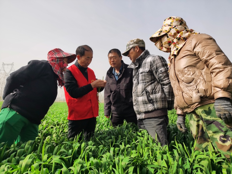 “看,現(xiàn)在小麥最后一片葉子已經(jīng)抽出,”3月30日,寶應(yīng)湖農(nóng)場公司五七大隊麥田里,該隊黨支部書記柏傳朗手握一株小麥,一邊扒開麥葉,一邊說,“小麥穗心開始露出,下一步管理上,一是做好清溝理墑,二是做好后期綜防……”