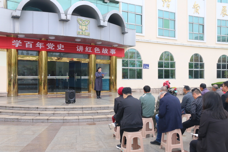4月23日,新洋社區(qū)直屬支部在農(nóng)場(chǎng)世紀(jì)廣場(chǎng)舉辦“學(xué)百年黨史 講紅色故事”紅色教育宣講活動(dòng),30余名職工居民群眾參加此次活動(dòng)。
