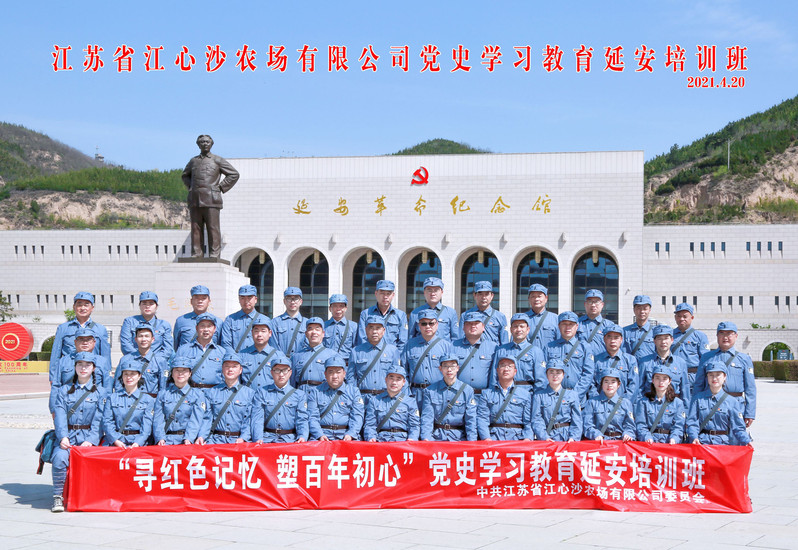 為扎實(shí)開展好黨史學(xué)習(xí)教育,進(jìn)一步筑牢理想信念,傳承紅色基因,發(fā)揚(yáng)紅色傳統(tǒng),4月18日至22日,江心沙農(nóng)場組織黨委中心組成員、中層以上管理人員、單位負(fù)責(zé)人和優(yōu)秀黨員代表前往革命圣地——延安開展以“尋紅色記憶 塑百年初心”為主題的黨史學(xué)習(xí)實(shí)境教育。農(nóng)場公司黨委書記、董事長朱江勝,黨委副書記、總經(jīng)理、社區(qū)管委會(huì)主任薛忠,黨委委員、副總經(jīng)理、工會(huì)主席蘇勇,分公司副總經(jīng)理施磊華,社區(qū)主任助理何璜煒一同參加活動(dòng)。