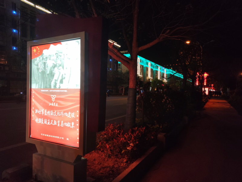 在全國人民熱烈慶祝中國共產(chǎn)黨成立100周年這一時刻,為配合做好中國共產(chǎn)黨成立100周年主題宣傳和慶?;顒?,淮海農(nóng)場有限公司以省市文明單位的創(chuàng)建為抓手,經(jīng)過精心籌備、緊張施工,5月7日傍晚,淮海路兩側(cè)的路邊綠化燈箱廣告宣傳欄正式安裝完成并通電使用。當(dāng)天晚上,那種紅彤彤的主題宣傳色彩,照亮了一公里長的淮海路,也讓淮海路上又增添了一道新的以黨的百年誕辰為主題宣傳的風(fēng)景線。