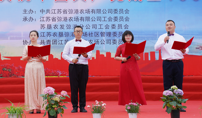 五月,瓜果飄香的弶農(nóng)處處充滿勃勃生機。5月12日,弶港農(nóng)場舉辦“永遠(yuǎn)跟黨走 啟航新征程”文藝匯演,隆重慶祝中國共產(chǎn)黨成立100周年。鹽城市委宣傳部部務(wù)委員、文明辦主任陳中才,鹽城農(nóng)墾事業(yè)管理辦公室主任徐均,東臺市市委宣傳部副部長楊俊民,三倉鎮(zhèn)黨委書記袁明、頭灶鎮(zhèn)黨委書記楊愛清,三倉鎮(zhèn)各村等領(lǐng)導(dǎo),公司領(lǐng)導(dǎo)班子成員、全場管理人員、受表彰先進、駐場單位主要負(fù)責(zé)人、歷屆勞模、農(nóng)場老領(lǐng)導(dǎo)及老黨員代表參加活動,活動由公司黨委副書記王強主持。