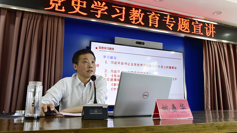 宣講中,姚春華依據(jù)習(xí)近平總書記在黨史學(xué)習(xí)教育動(dòng)員大會(huì)上的重要講話精神,在把握精髓要義、領(lǐng)會(huì)精神實(shí)質(zhì)的基礎(chǔ)上,結(jié)合自身調(diào)查研究和學(xué)思踐悟,以《學(xué)習(xí)黨的歷史 弘揚(yáng)黨的傳統(tǒng) 為全面開啟新征程提供堅(jiān)強(qiáng)政治保證》為題,從深入學(xué)習(xí)領(lǐng)會(huì)習(xí)近平總書記關(guān)于黨的歷史的重要論述的9個(gè)要點(diǎn),充分認(rèn)識(shí)開展黨史學(xué)習(xí)教育的重大意義;認(rèn)真研讀黨史基本著作,全面了解中國(guó)共產(chǎn)黨百年奮斗的光輝歷程和歷史性成就;深刻把握開展黨史學(xué)習(xí)教育的重點(diǎn);學(xué)懂弄通做實(shí)新時(shí)代中國(guó)特色社會(huì)主義思想,增強(qiáng)“四個(gè)意識(shí)”,堅(jiān)定“四個(gè)自信”,做到“兩個(gè)維護(hù)”這四個(gè)方面展開宣講,使大家對(duì)中國(guó)共產(chǎn)黨百年奮斗的光輝歷程、為國(guó)家和民族作出的偉大貢獻(xiàn)、始終不渝為人民的初心宗旨、推進(jìn)馬克思主義中國(guó)化形成的重大理論成果、長(zhǎng)期奮斗鑄就的偉大精神、成功推進(jìn)革命建設(shè)改革的寶貴經(jīng)驗(yàn)等有了更深入更全面的領(lǐng)會(huì)和把握。
