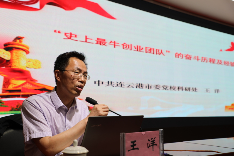 近日,連云港市委黨??蒲刑幪庨L王洋受邀來到東辛,為60位東辛入黨積極分子作《“史上最牛創(chuàng)業(yè)團(tuán)隊(duì)”的奮斗歷程及經(jīng)驗(yàn)啟示》授課。