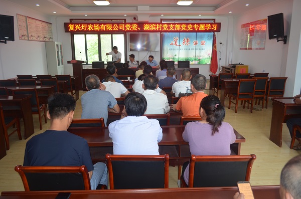 金湖縣銀涂鎮(zhèn)湖濱村是復(fù)興圩農(nóng)場黨建工作企地共建單位,自黨史學(xué)習(xí)教育開展以來,雙方進一步加強學(xué)習(xí)交流,先后赴浙江安吉、嘉興、常熟開展了“學(xué)黨史踐初心 開新局譜新篇”紅色實境教育。6月27日下午,在湖濱村黨支部活動室開展了企地共享學(xué)黨史活動,邀請了銀涂鎮(zhèn)人武部部長黃冬作了專題黨課。黃部長從完成新民主主義革命,建立中華人民共和國開始說起,深刻闡述了黨堅定地捍衛(wèi)國家民族利益,真誠地解決人民、特別是農(nóng)民的民生問題,努力實現(xiàn)人民的民主權(quán)利,黨、政府和軍隊的高度廉潔;從完成社會主義革命,確立社會主義基本制度說起,闡述了中國共產(chǎn)黨在政治上、經(jīng)濟上、外交上、國防上取得的偉大成就;從進行改革開放新的偉大革命,極大解放和發(fā)展社會生產(chǎn)力說起,闡述了經(jīng)濟快速發(fā)展、民主法治建設(shè)取得的進步、文化影響力顯著擴大,人民生活水平大幅度提高、國家統(tǒng)一大業(yè)穩(wěn)步推進、國防實力得到很大提升說起,總結(jié)了黨為中華民族作出的偉大貢獻。