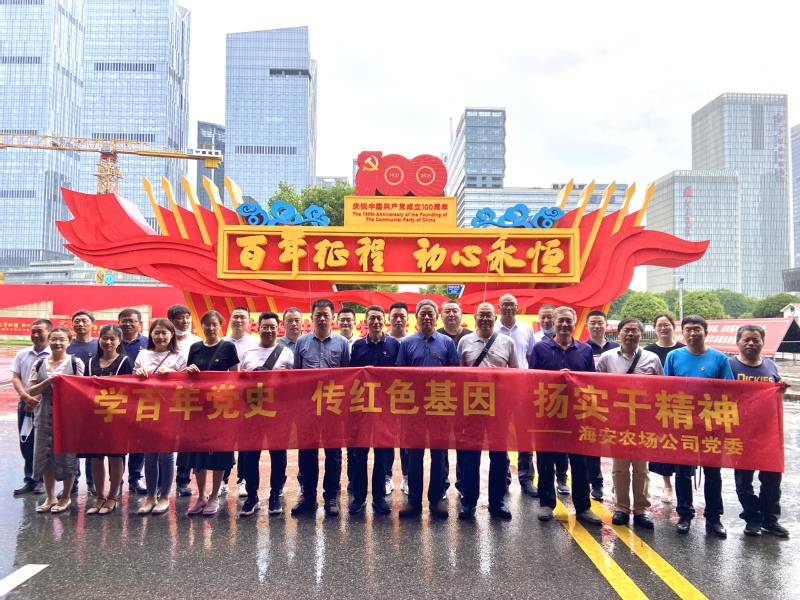 為全面學習中國共產(chǎn)黨在江蘇百年波瀾壯闊的奮斗歷程,7月8日,海安農(nóng)場公司黨委組織到南京參觀“百年征程 初心永恒——中國共產(chǎn)黨在江蘇歷史展”。黨委書記邱海濤、黨委理論中心組全體成員、黨支部書記、生產(chǎn)區(qū)主任及機關(guān)全體參加了活動。
