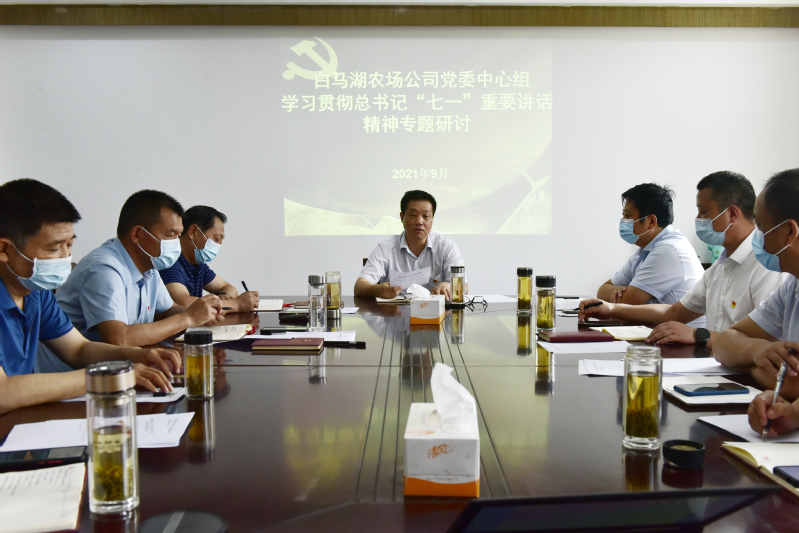 9月28日上午,白馬湖農(nóng)場(chǎng)公司黨委中心組舉行“學(xué)習(xí)貫徹落實(shí)習(xí)近平總書(shū)記在慶祝中國(guó)共產(chǎn)黨成立100周年大會(huì)上的講話精神”專(zhuān)題研討會(huì),黨委書(shū)記姚春華主持研討會(huì),中心組全體成員參加會(huì)議。