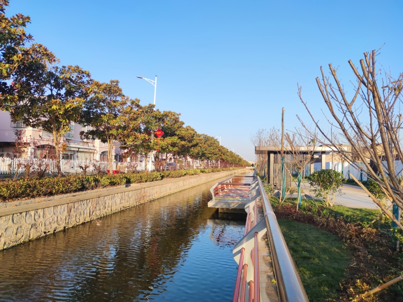 “沒想到農(nóng)場也建起了健身步道,而且步道兩側(cè)還栽種了許多綠化苗木和花草,還配置了許多景觀小品、休息坐椅、親水平臺,生活在農(nóng)場真是太幸福了。”居住在農(nóng)場神禾路別墅區(qū)的張老漢望著河對岸清新的環(huán)境感慨地說道,“沒建這個步道前,其間要么是堆積的雜物、雞鴨棚或是種植的莊稼,破敗的狀況讓人不忍直視。現(xiàn)在好啦,新砌的圍墻將步道與居住區(qū)隔開,道路是彩色道路,兩邊還裝了別致的路燈,不同的樹木自成一體,大家茶余飯后就可以在步道上邊散步邊聊天了。”