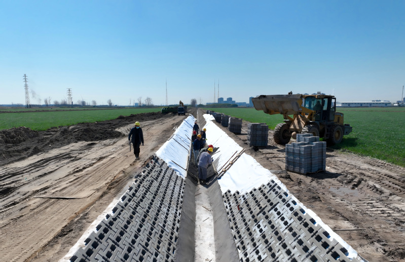 3月19日,在南通公司二大隊,土地綜合整治工作正如火如荼進行,施工團隊正在為排水溝鋪設(shè)生態(tài)磚。為更好適應(yīng)集中連片、智慧化生產(chǎn)需要,南通公司從去年起推動補充耕地土地綜合整治,項目投資1700余萬元,建設(shè)規(guī)模332.9公頃,預(yù)計可新增耕地15.4公頃,截至目前總體形象進度完成近30%。