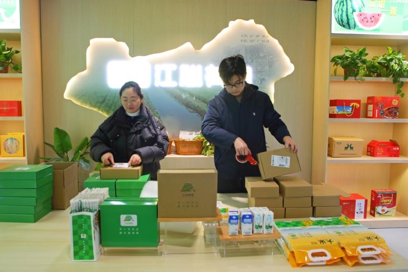 3月13日,江心沙江心有田拼多多門店下單數(shù)超過100單,圖為工作人員忙著打包發(fā)貨。據(jù)了解,一季度以來,江心沙通過“線上營銷+線下推銷”齊發(fā)力,實現(xiàn)普通大米、功能性大米、糧油等農(nóng)產(chǎn)品銷售額達100余萬元。